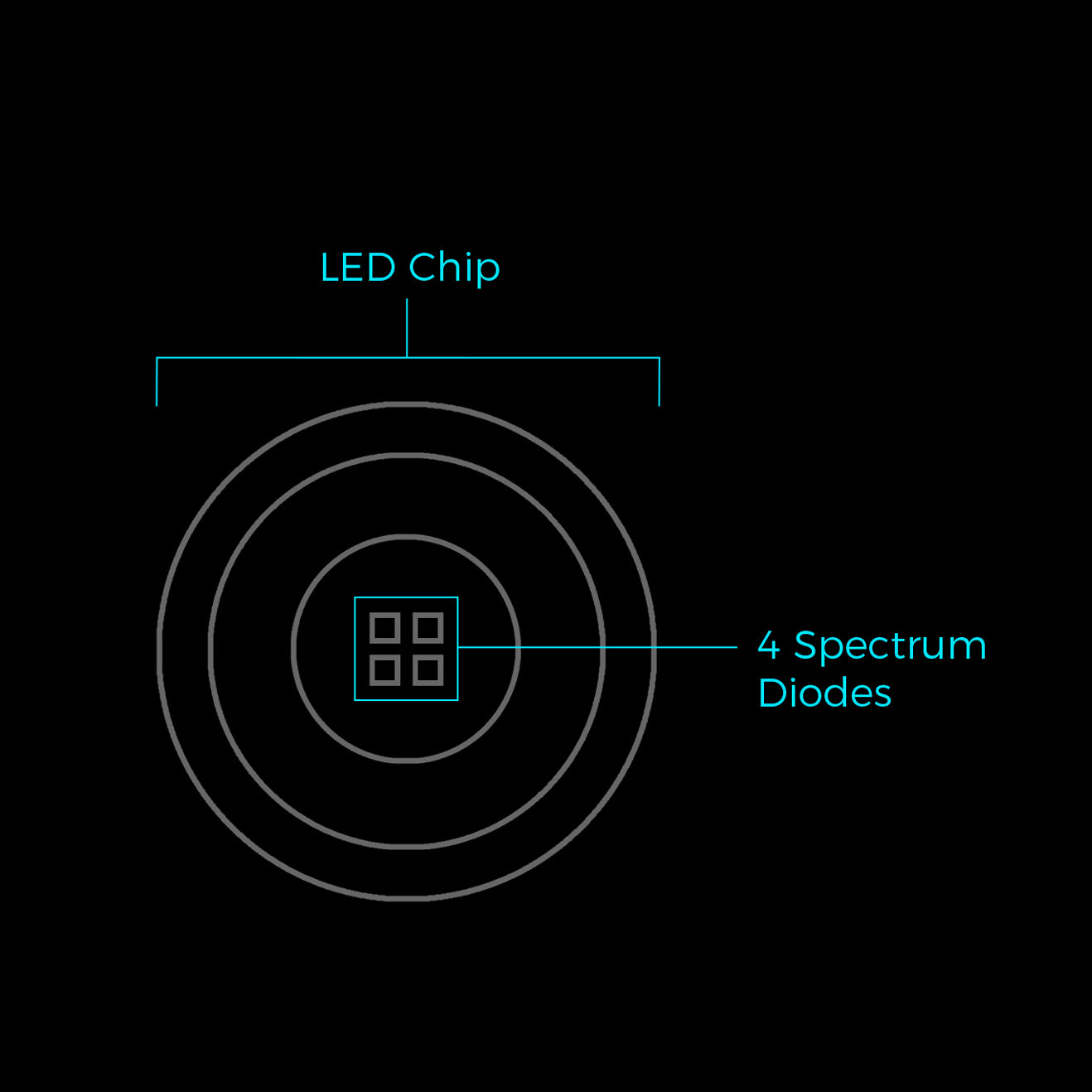 Look into the lens of the Helix light bar (powered off!) and you will see four little squares, which are the LEDs. Each square is a different spectrum, ensuring the best overall lighting for the coral and creating a repeating sequence that is the shortest on the market. The shorter repeating sequence creates a better blended light and minimized disco effect.